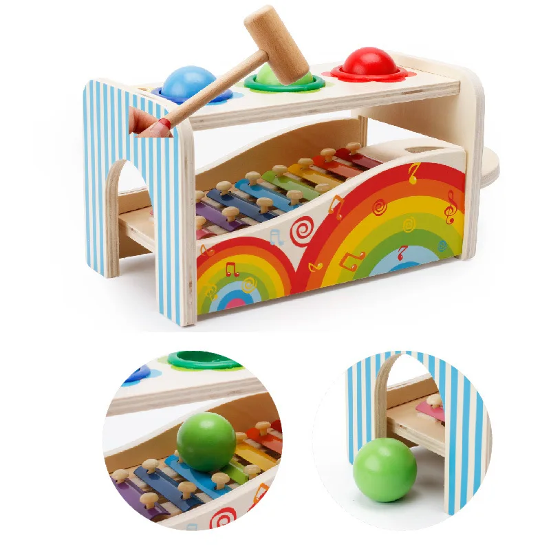 BEST QUALITY Children Wooden Toys Cartoon Multi-functional Xylophone Music Beat Piling Toys Kids Early Education