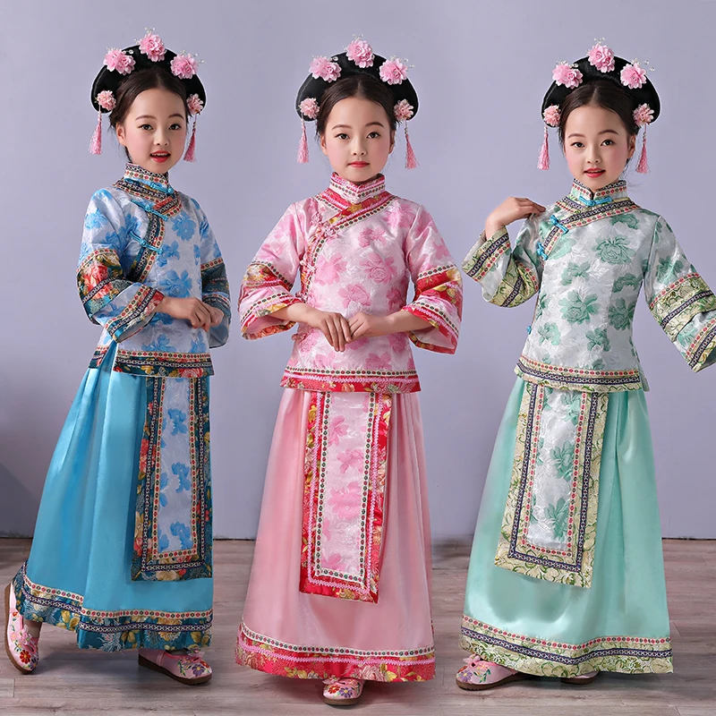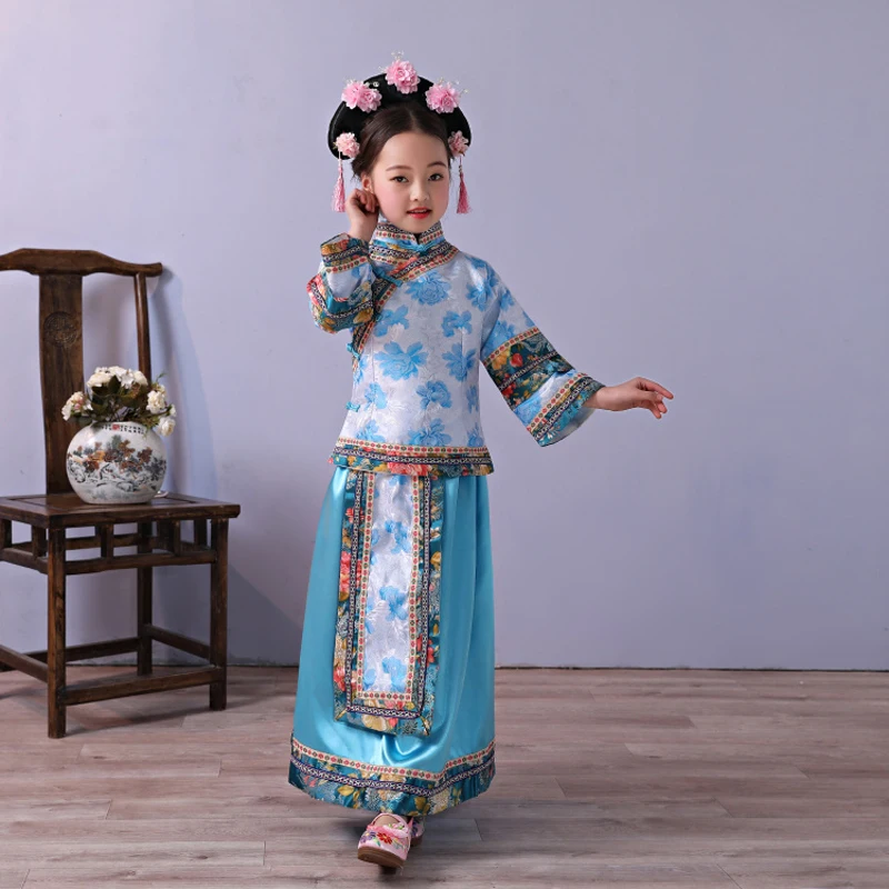 Children Suit Chinese Traditional Kids Ancient Infanta Costume Dande Wear Lovely Girl's Qing Dynast